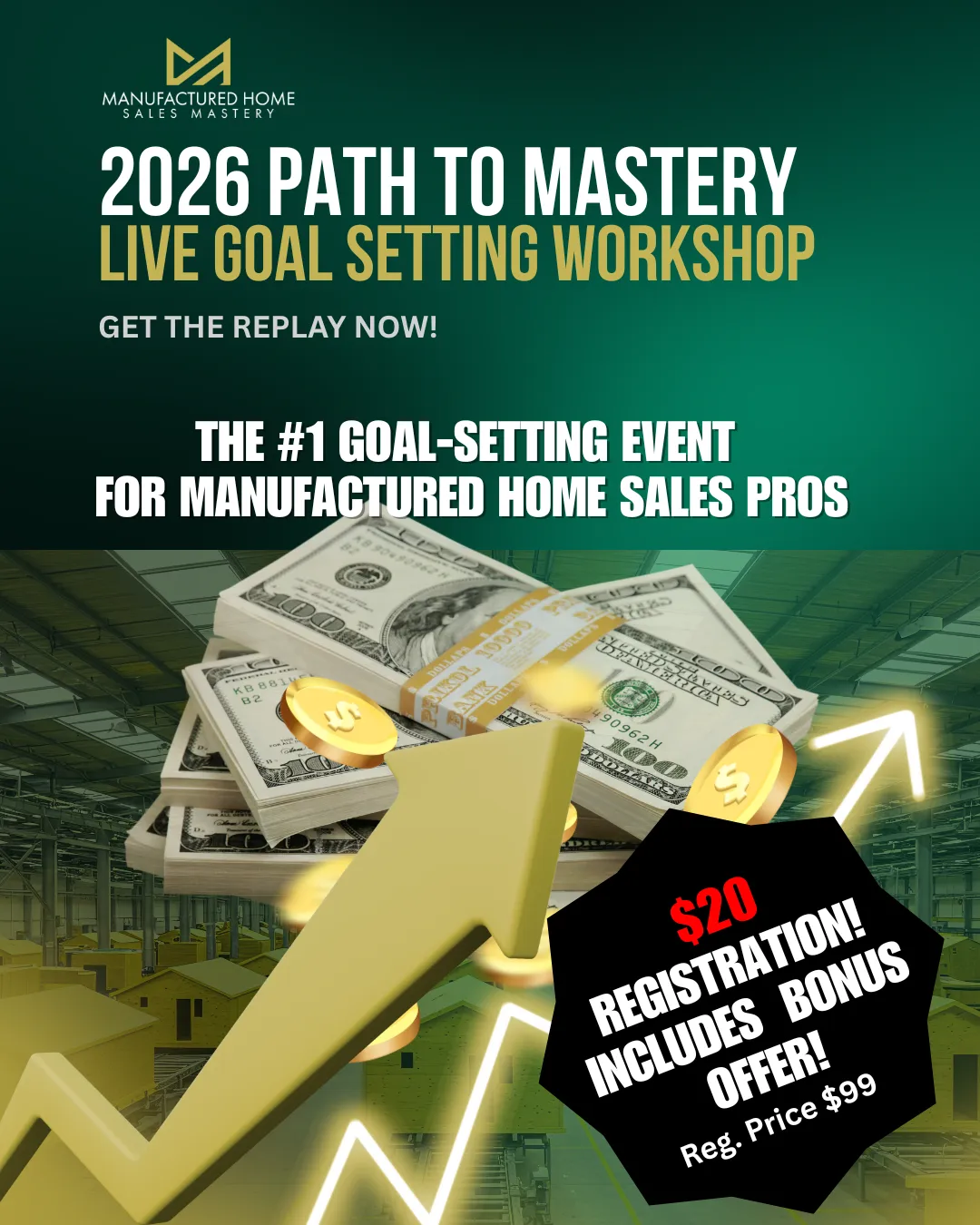 Experience the 2.5-hour, high-impact workshop designed specifically for manufactured home sales consultants and community managers in the manufactured home industry. You’ll walk away with a crystal-clear 2026 game plan built to help you dominate sales, lead with confidence, and stay accountable all year long.
